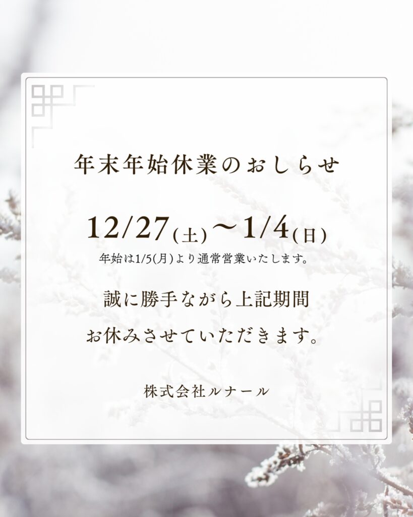 誠に勝手ながら、下記の期間を年末年始休業とさせていただきます。
